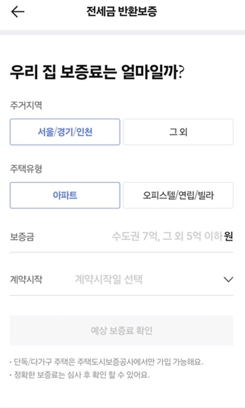 각 보증보험의 보증료가 나오고 거기서 골라서 결제만하면 간편하게 가입이 되는데….