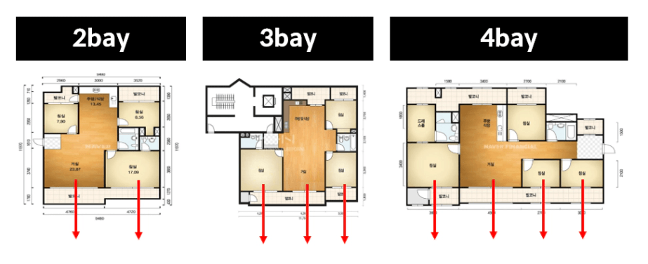 오늘은 베이(bay), 방과 화장실 개수, 복도식/계단식에 따른