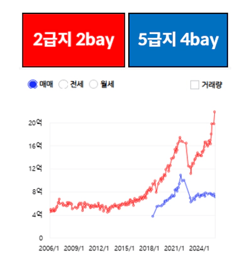 우측에 찍힌 빨간색 점은 실거래 가격인데요.