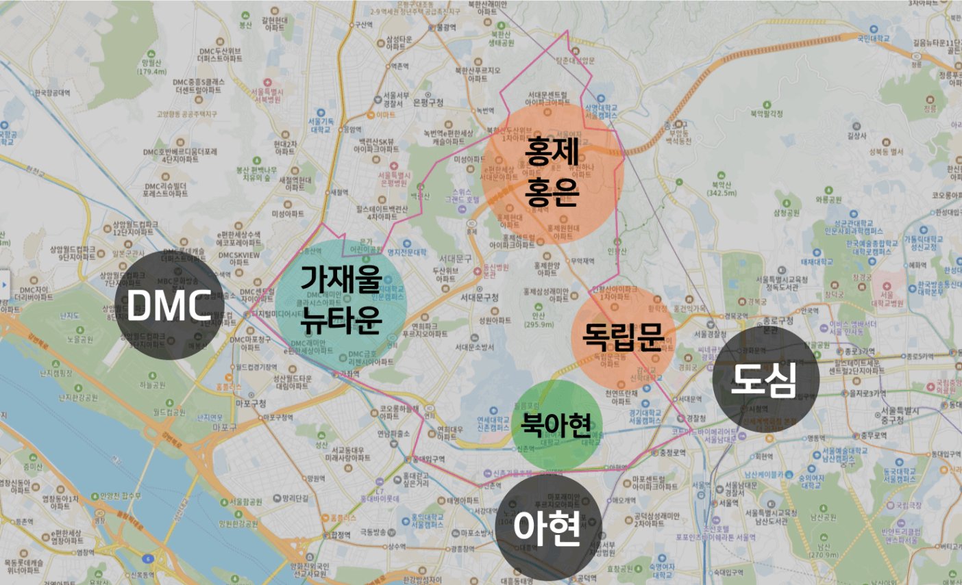 서울 중심에 가까운 북아현
