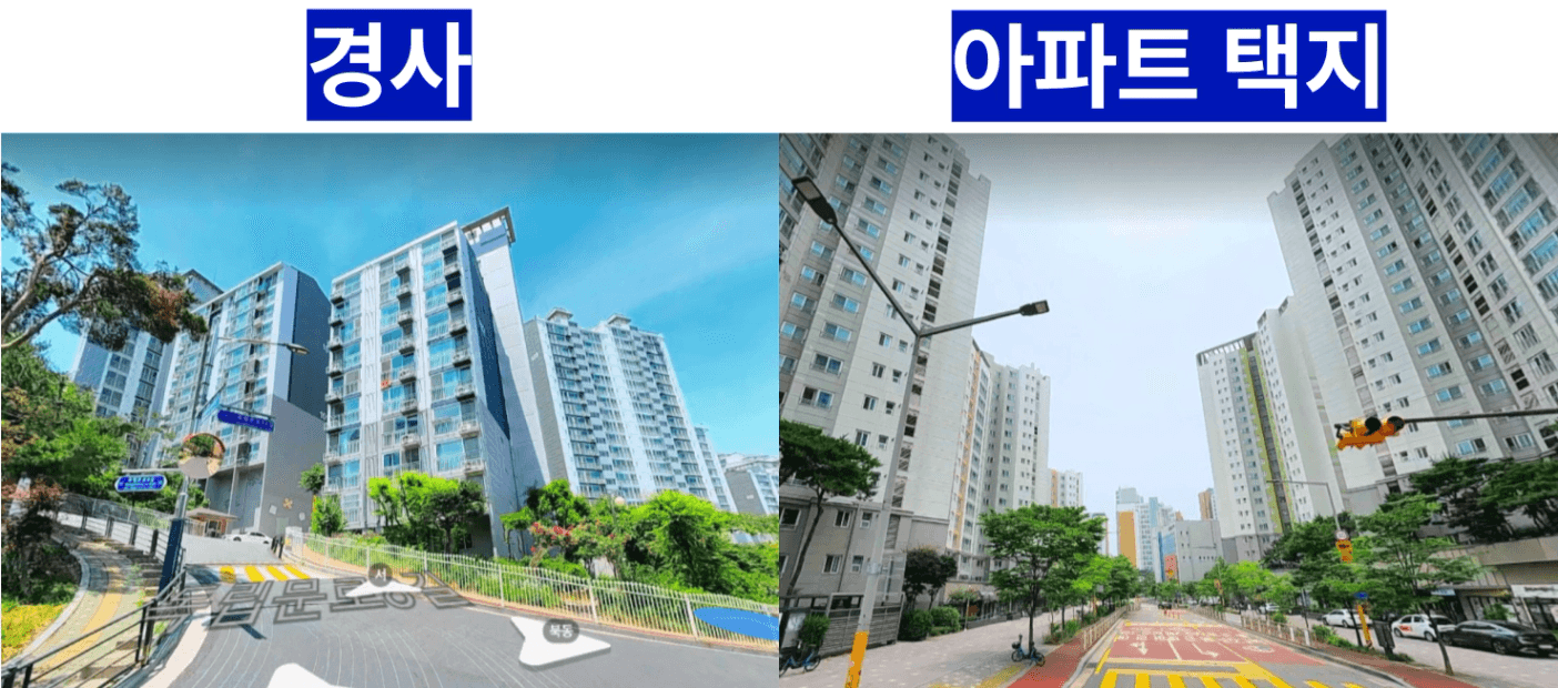 붙어있는 아파트인데 경사에 따라 선호도 차이가 크기도 하고