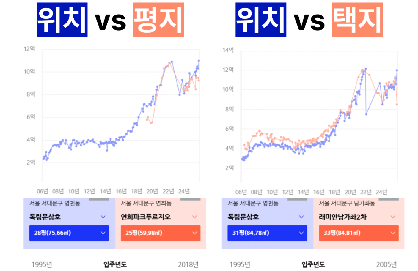 두 뉴타운의 연식은 비슷하지만