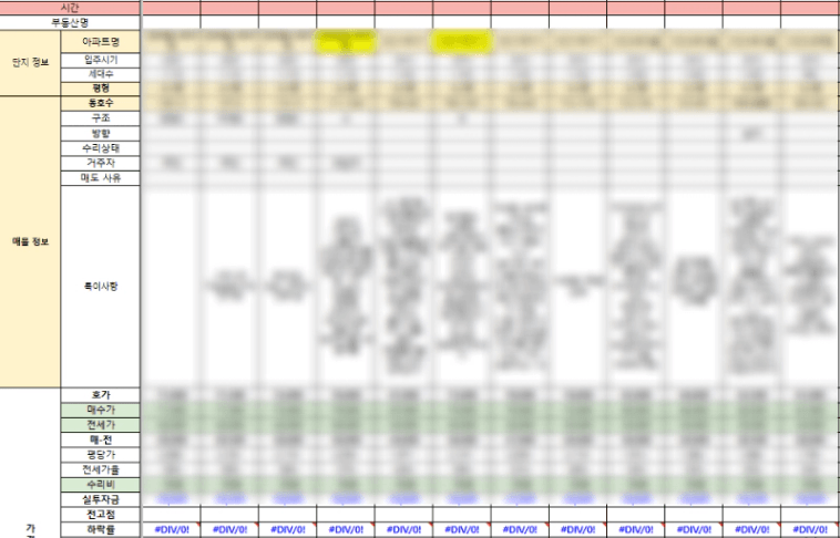 1. 매물임장 정리 시트 활용 및 정리