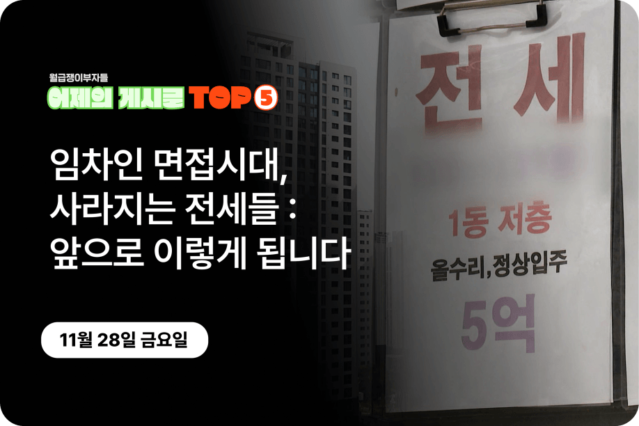 가장 반응이 좋았던 인기글만 담아 ‘어제의 게시글’ TOP5를 소개합니다.