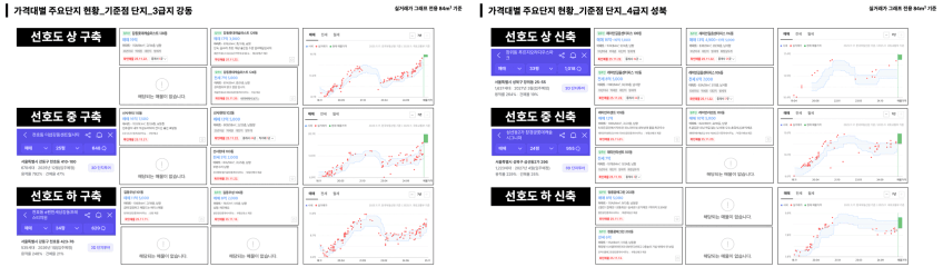 더불어, 4강에서 배운 시장흐름에 대한 부분을 적용하기 위해 이번에는 서울 및 수도권을 급지별로 나누고 생활권 별 선호도에 따라 신축/구축 대표단지를 설정해 그 흐름과 호가 상황을 확인해봤습니다. 확연히 지금 시장이 어디까지 움직였고, 어디서부터 브레이크가 걸렸는지 넓은 관점에서 볼 수 있었습니다.