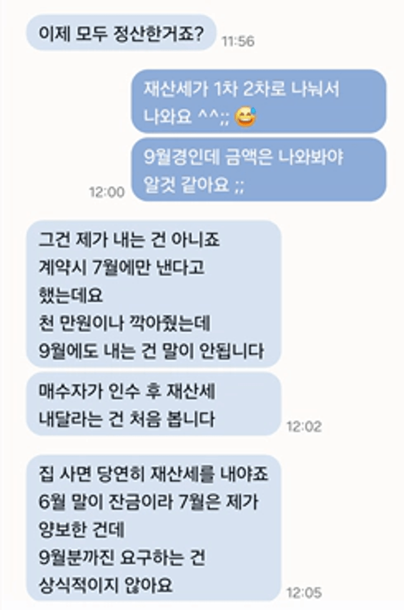 이 상황 때문에 매도자분께서도 “그렇다면 그 해 재산세는 본인이 내겠다”라고 분명히 말씀하셨고,