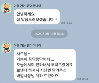 그런데 잠시 후, 부사님께서 다급하게 연락을 주셨습니다.