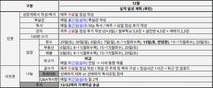 12월 목표: 월부학교 2개 / 실전 2개 / 재테기 2개