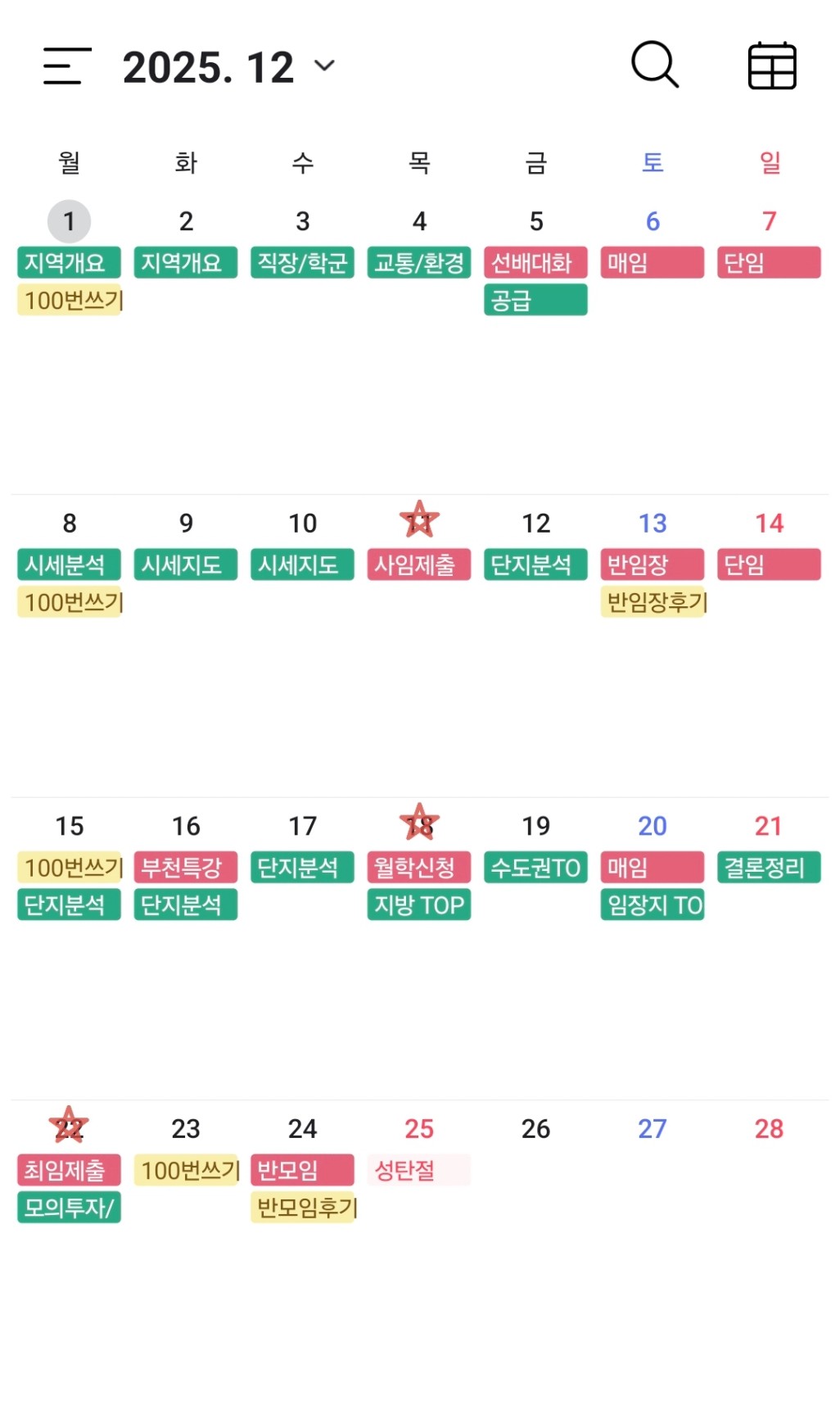 T : 임장-12월 임장지 역시 투자자가 많이 몰려있는 지역이지만, 굴하지않고 투자자로 집 보기 / 임보-단임 후 생활권정리장표 미리 만들어놓기