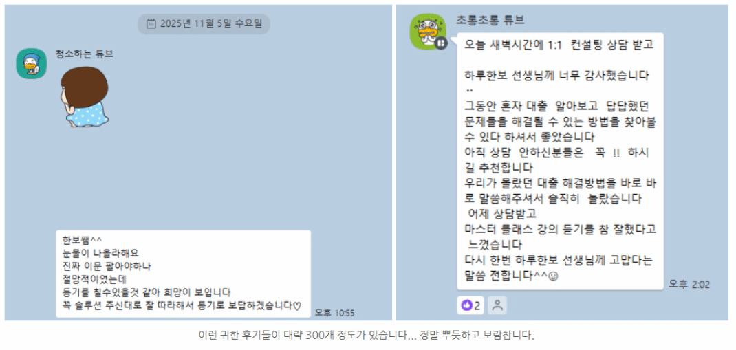 바로, 하루한보, 제가 '대출로 인생을 바꾼' 장본인 이기 때문입니다. 수강생 및 상담고객들의 마음을 누구보다 잘 압니다.