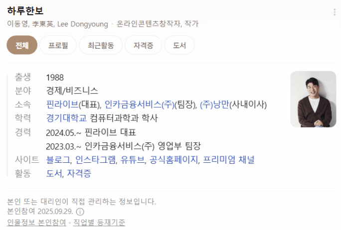 네이버에 '하루한보'를 검색하면 제 소개와 함께
