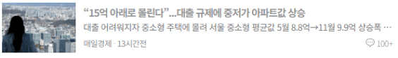 대출이 용이한 15억 이하의 아파트 매수세가 지속적으로