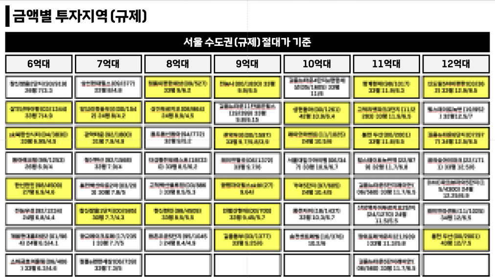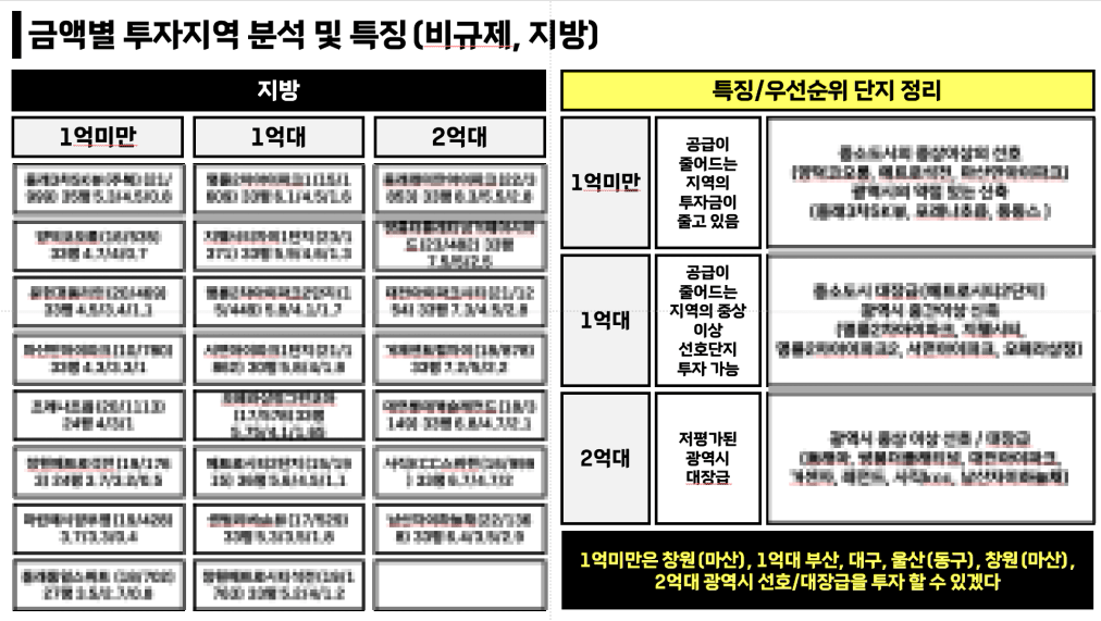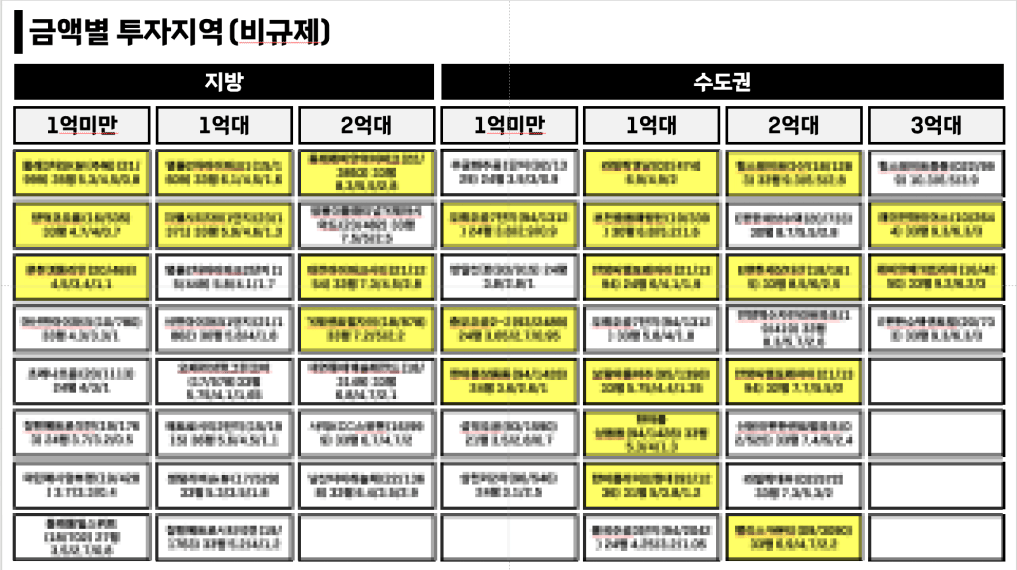 10.15 이후 혼란한 시장 상황에서 빠르게 전국적으로 금액별 최선의 투자처와 분위기를 느끼기 위해