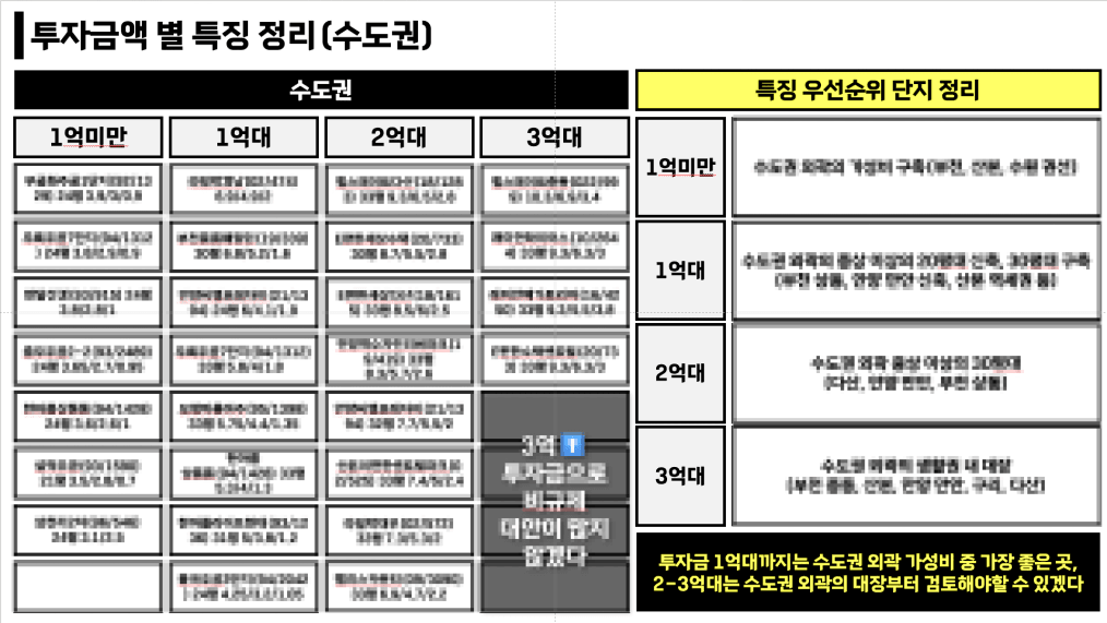 투자 방향성에 대해 점검하고 시나리오 별 매수 가능한 지역과 후보 단지를 추려보았습니다