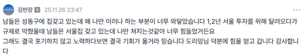 10 | 2025-11-20 | 서울자가에 대기업 다니는 김부장 이야기로 보는 나의 미래 | 78 | |