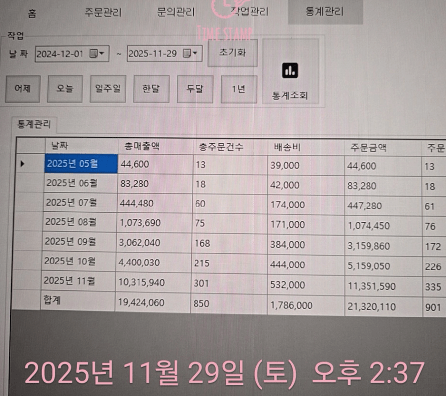 마침내 이번 달 월 매출 1,000만 원을 돌파했습니다.