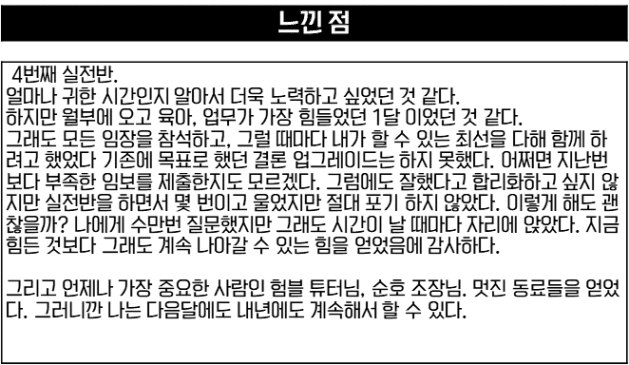 [실전 33기 험블튜터님과 함께라면 1달만에 3년치 레벨업 가능하조_나슬] 25.11 실전반 성장 후기