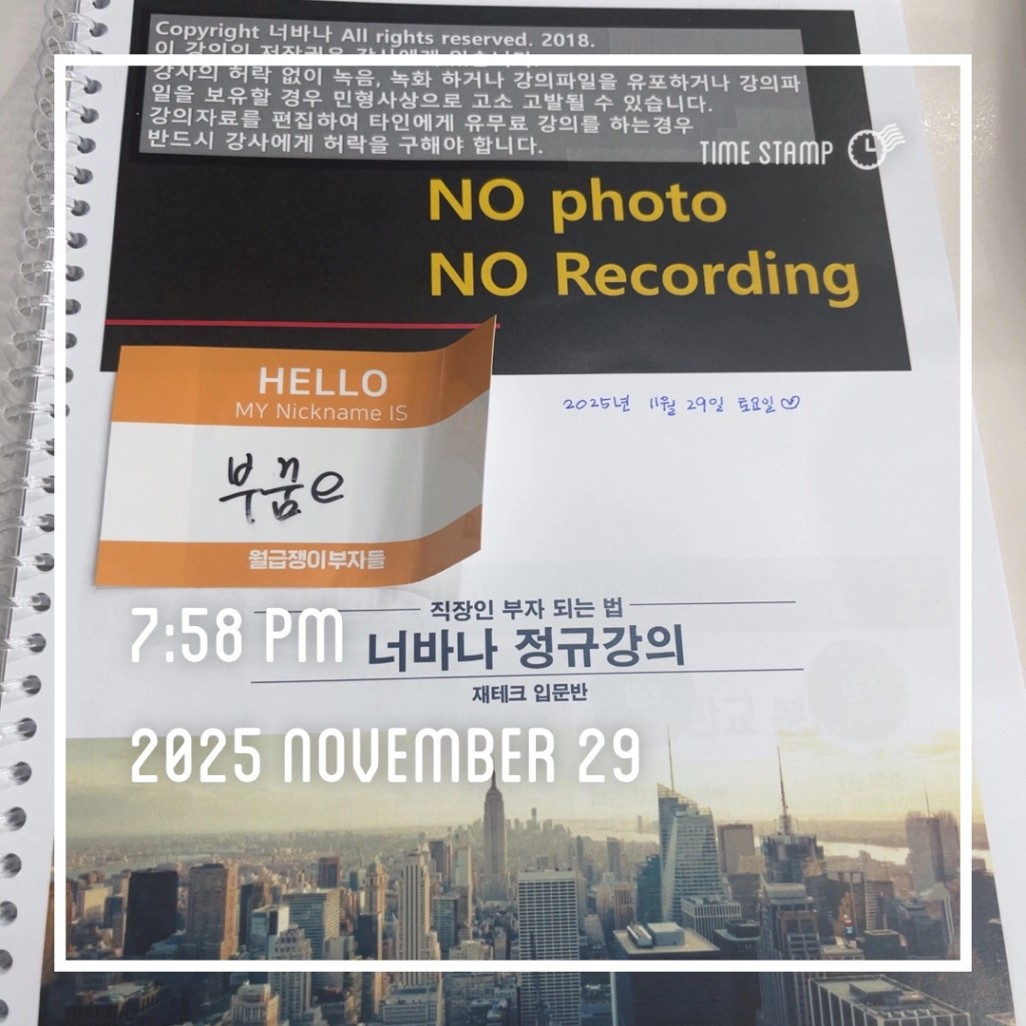 열기수업은 정말 오랜만에 재수강을 하게 되었는데요, 너바나님을 실제로 봬니 너무 신기해서 한동안은 멍하니 처다보고 있었네요. 20년차 투자자답게 정말 뿜어져 나오는 아우라가 달랐습니다.