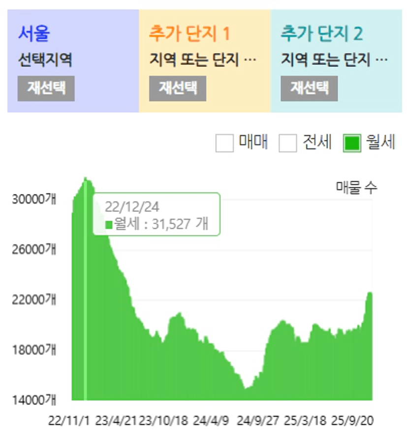월세 매물은 22년 12월 3만 1천 개 수준에서