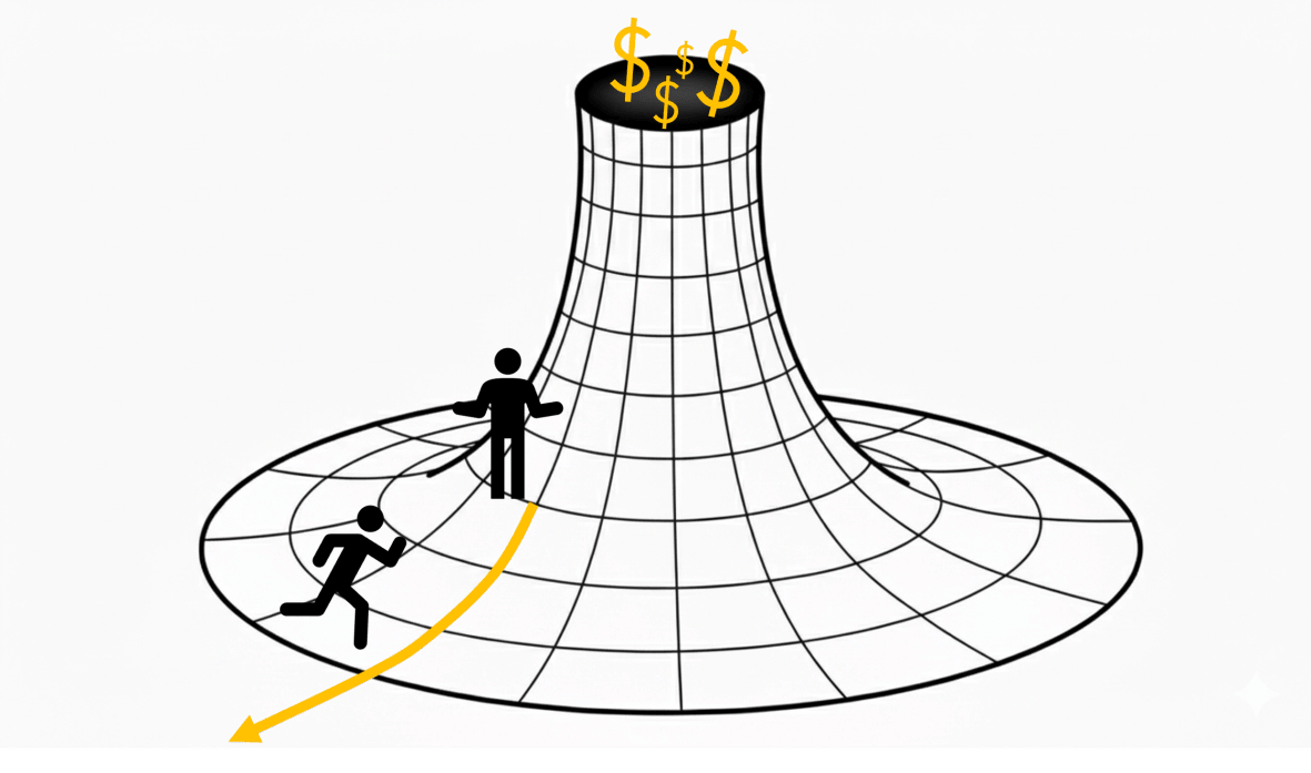 그냥 달리면 원의 중심에 있는 자산가들에게서 멀어질 뿐 입니다.