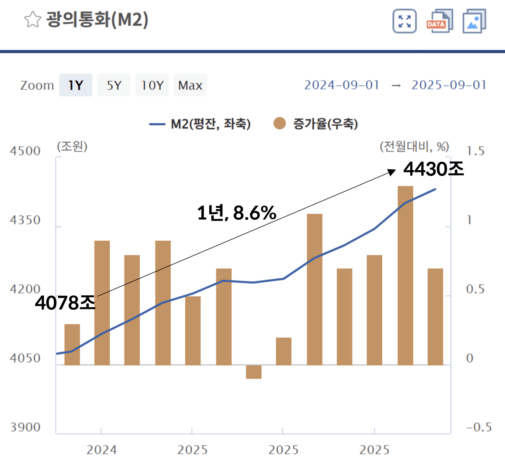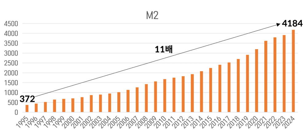 그 중 ‘M2 통화량’은 단기적으로 현금화할 수 있는 자산 전체를 포함하기에