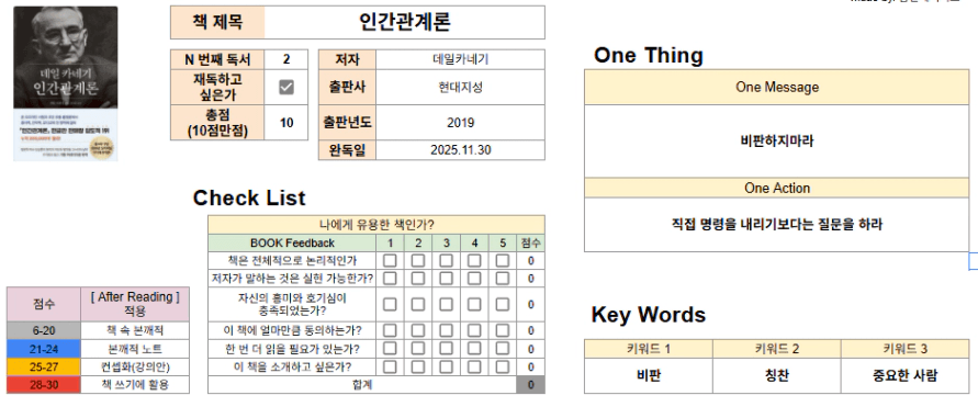 | 이 책의 앞장에서 보면 이 책은 늘 곁에 두고 한달에 한번씩 꺼내 읽으라고 했는데, 맨 처음에는 자기 책이 얼마나 대단하다고 그러나... 생각을 했지만 이 책을 2번 읽는 나로써는 저자의 말에 너무 공감한다. 인간관계론은 인문학의 대표 서적이자 뒤를 돌아서면 쉽게 잊을 수 있는 정보의 파도에 사는 우리들에게 우리가 정말 사소하게 놓치고 있는 부분들을 여러 사례를 통하여 깨닫게 만들어준다. 액션플랜을 주고 사례를 주면서 우리를 생각하게 만드는 점이 이 책을 계속 읽어야 되는 이유라고 할 수 있다. | |||||||||||||||||