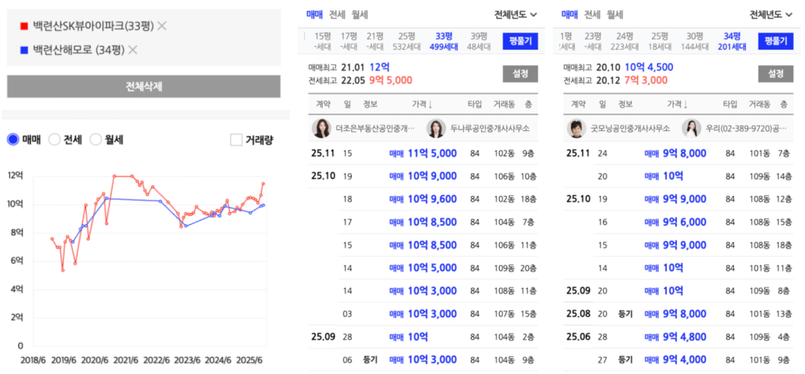 은평구에 백련산 해모로 84타입이 9.8억에 거래되었는데 바로 옆 단지랑 비교했을 때