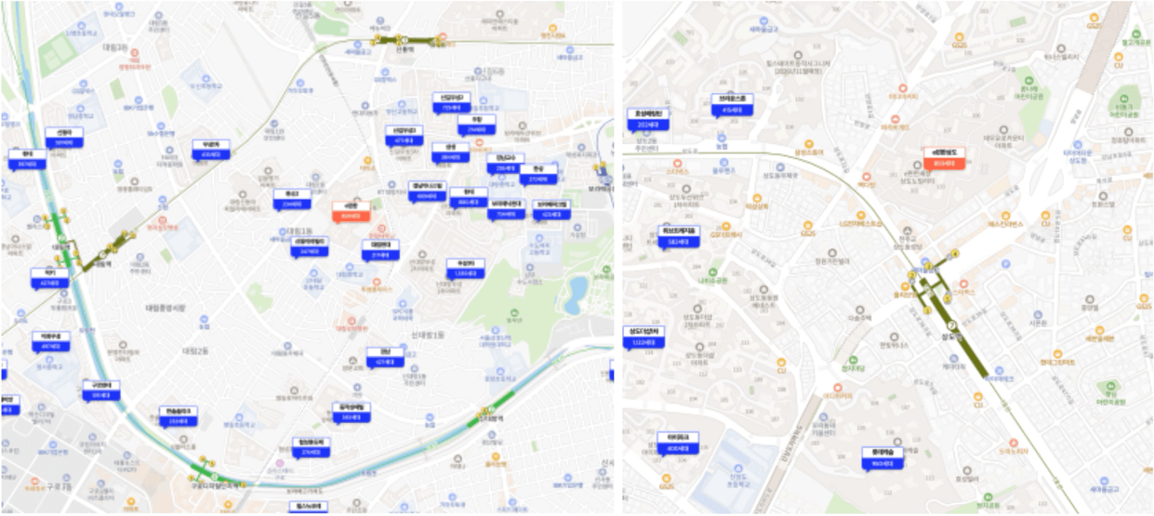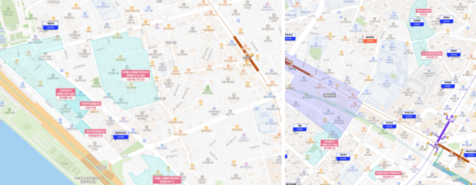 동대문구의 1등 생활권인 답십리에서 사람들이 '좋아하는' 곳은 위 지도의 좌측입니다.