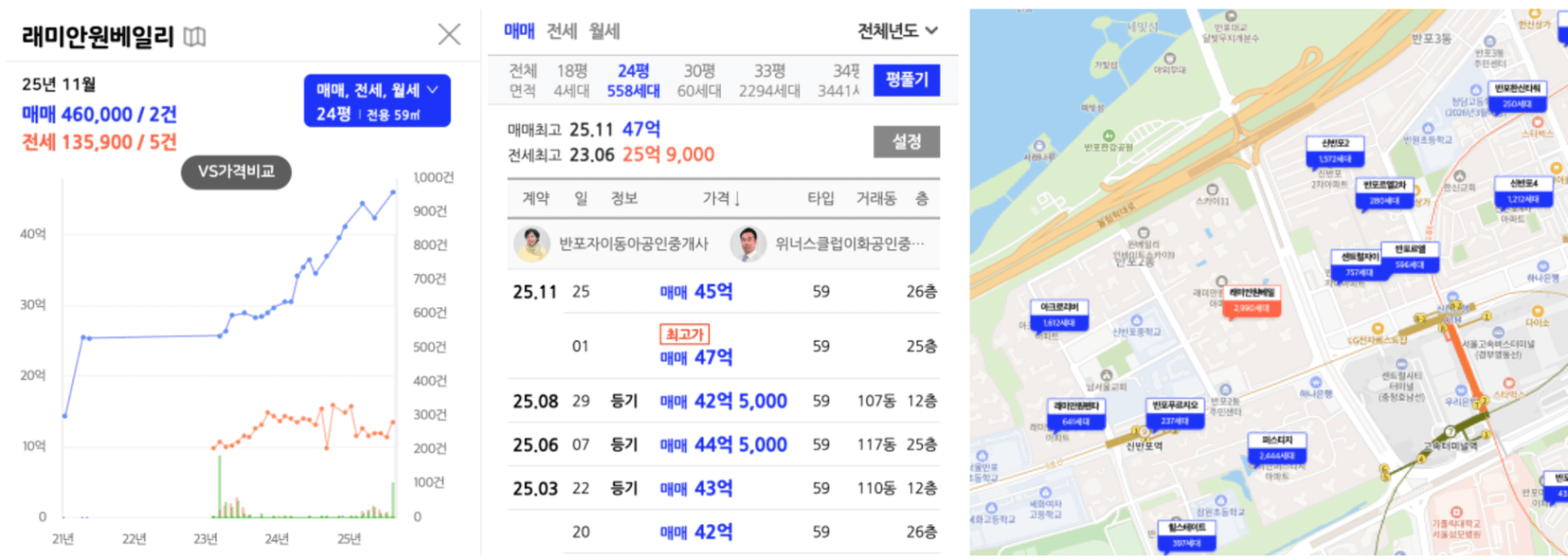 서초구 래미안원베일리...!! 59타입이 47억에 거래된 것을 볼 수 있습니다.