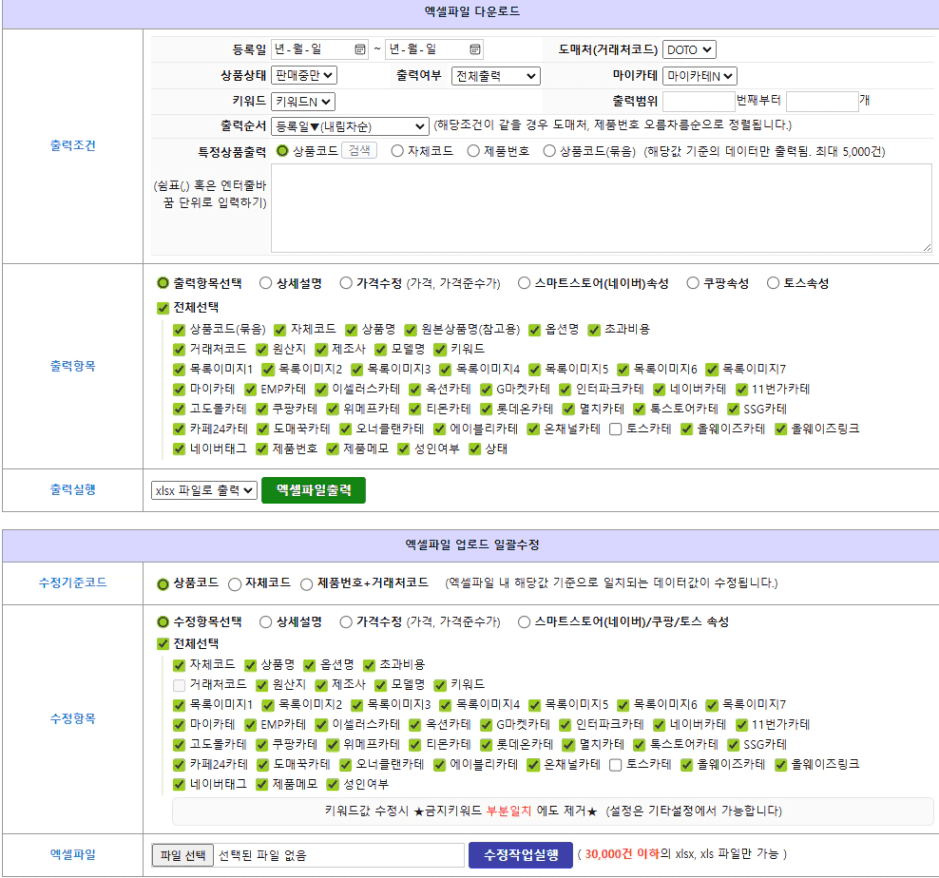 네 우주 대표님 현재 설정하신 대로 엑셀파일 출력하시면 전체 상품 다운 받으실 수 있으실거에요~