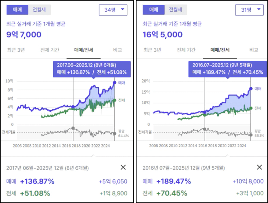 • 투자금 1.3억 / 매매상승 10.8억 / 전세상승 3.1억 / 830%