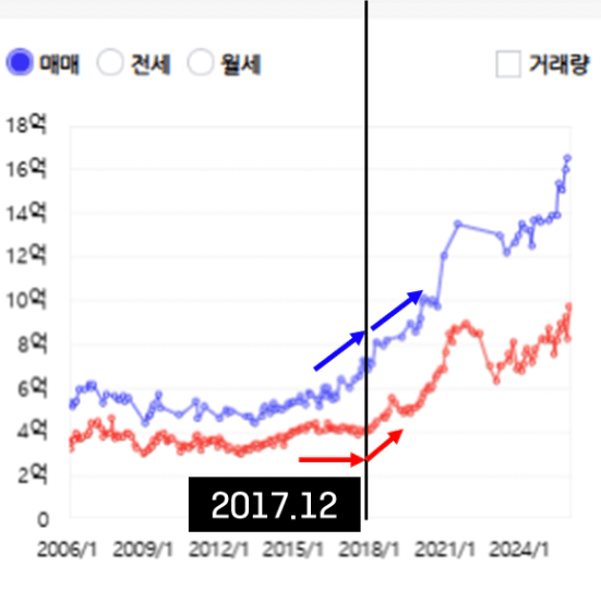 2015년 말부터 2017년 말까지 분당은 계속해서 가격이 오르는 반면에