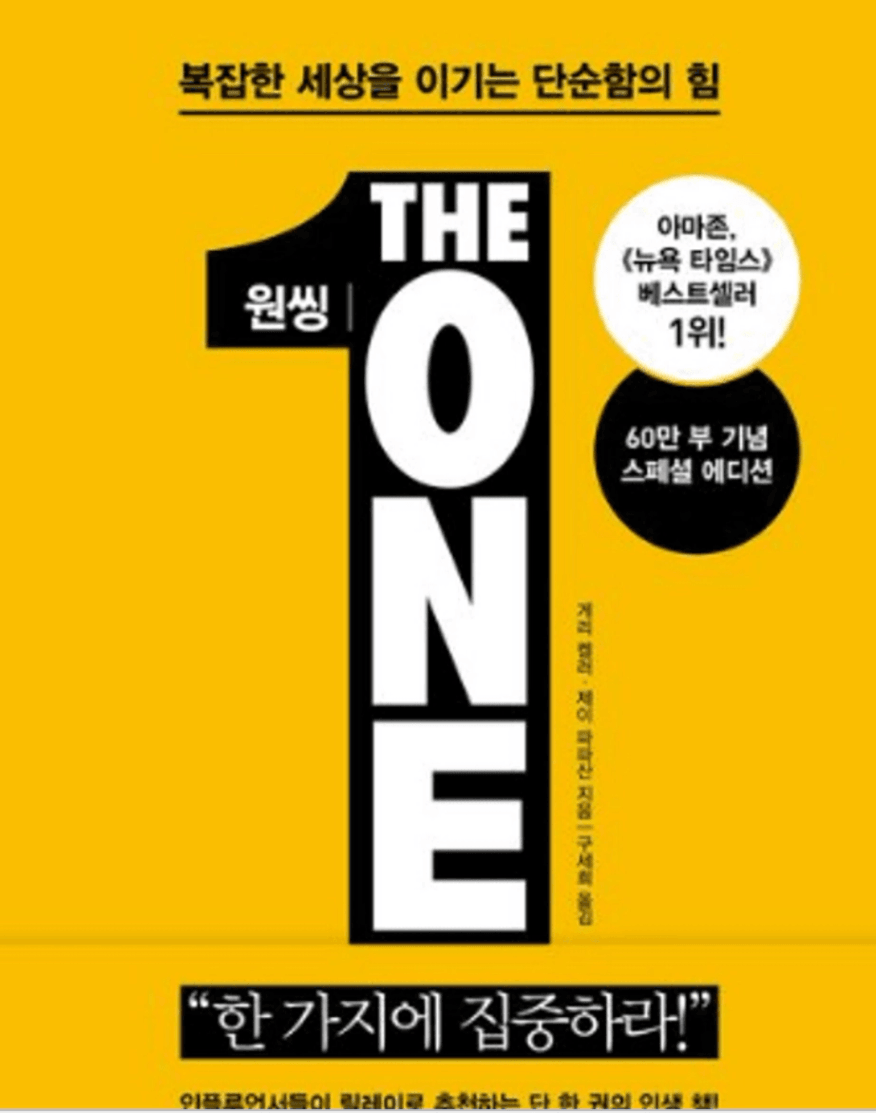 가장 중요하고 우선순위가 높은 일 한 가지를 제대로 해내면 모든 성과의 80%가 해결된다는 원씽의 원메세지.