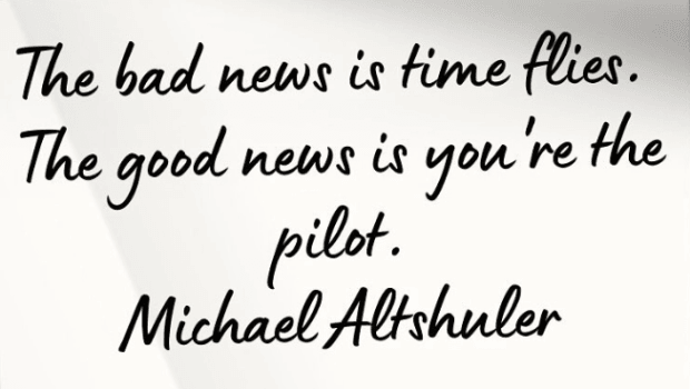 "나쁜 소식은 시간이 날아간다는 것입니다. 좋은 소식은 당신이 그 비행기의 조종사라는 것입니다."
