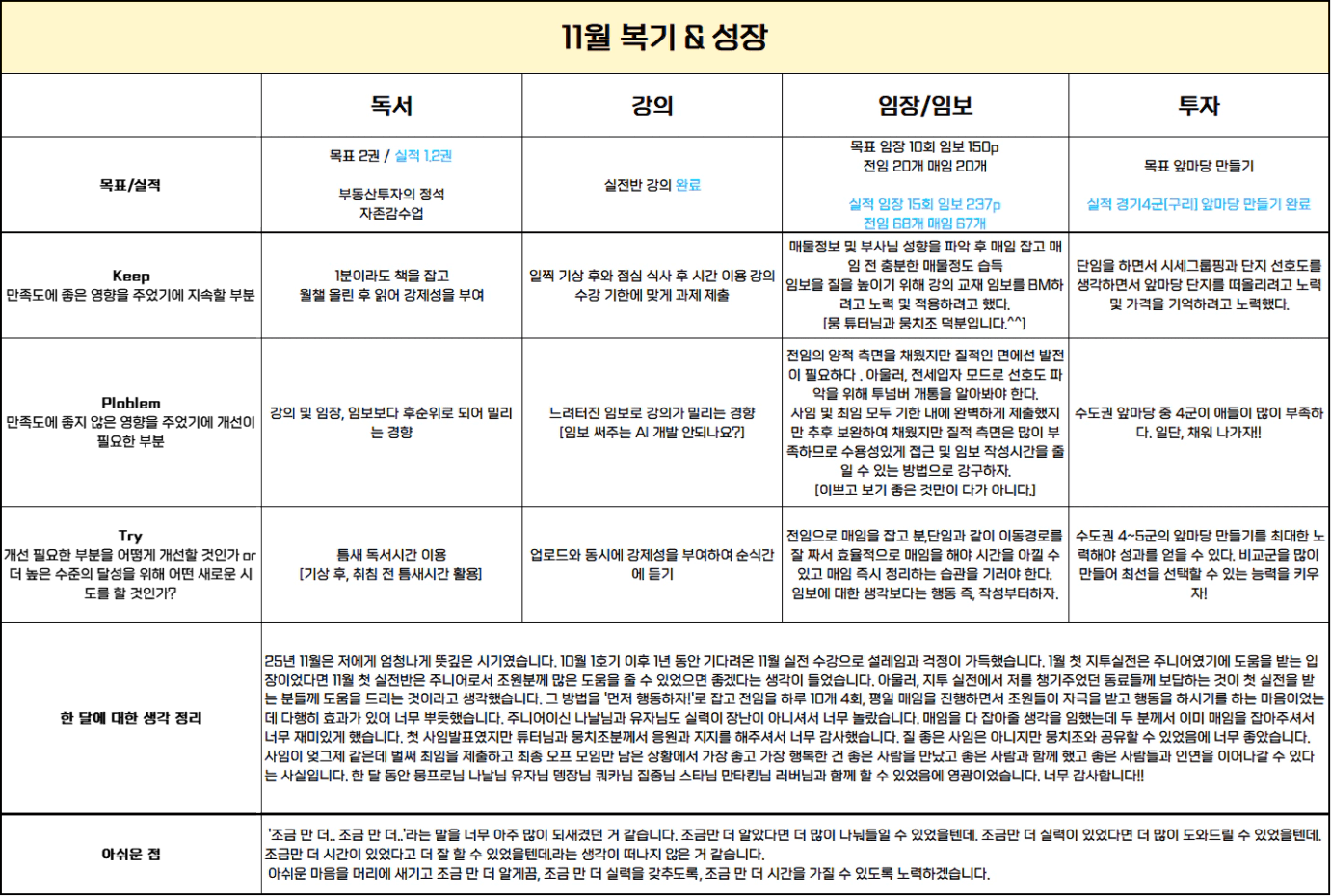 오늘은 11월 성장[11월 복기 및 12월 계획]