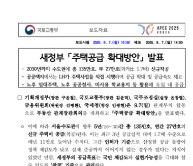 정부의 9.7 대책 이후