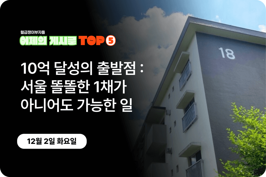[어제의 게시글 Top5] 10억 달성의 출발점 : 서울 똘똘한 1채가 아니어도 가능한 일