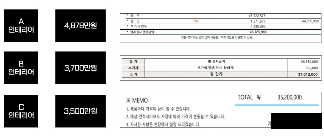 3. 소통, 가격, 마감 기준으로 실측할 인테리어 업체 3군데 선정하기