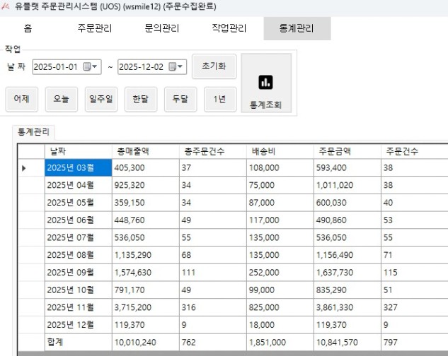 UOS 등록 안한 사업자1의 스마트스토어 누적 매출  4,148,545원