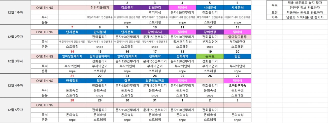 버썬님~! 12월 원씽캘린더까지 하셔서 올리시다니 멋지십니다! 이렇게 하시는데 전세 무조건 뺀다 아자아자!!!!