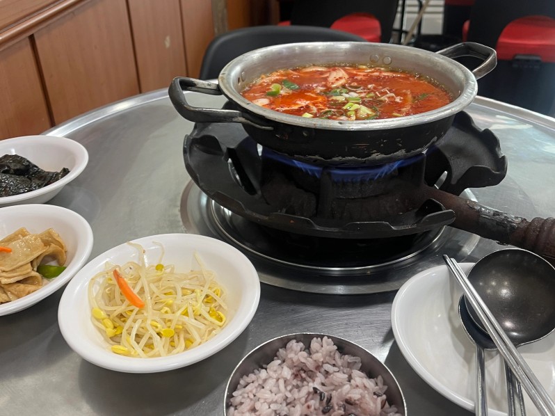 가방 놓고 앞에 김치찌개를 먹으러 갔습니다 > 건강을 생각해서 편의점 말고 밥집으로 간건데 양은냄비가..!