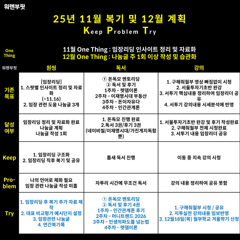 KPT 복기에 적은대로 12월 원씽으로 삼은 목표는