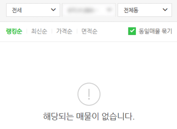 천만 다행으로 해당 단지의 동일 평형 전세 매물이 없었다.
