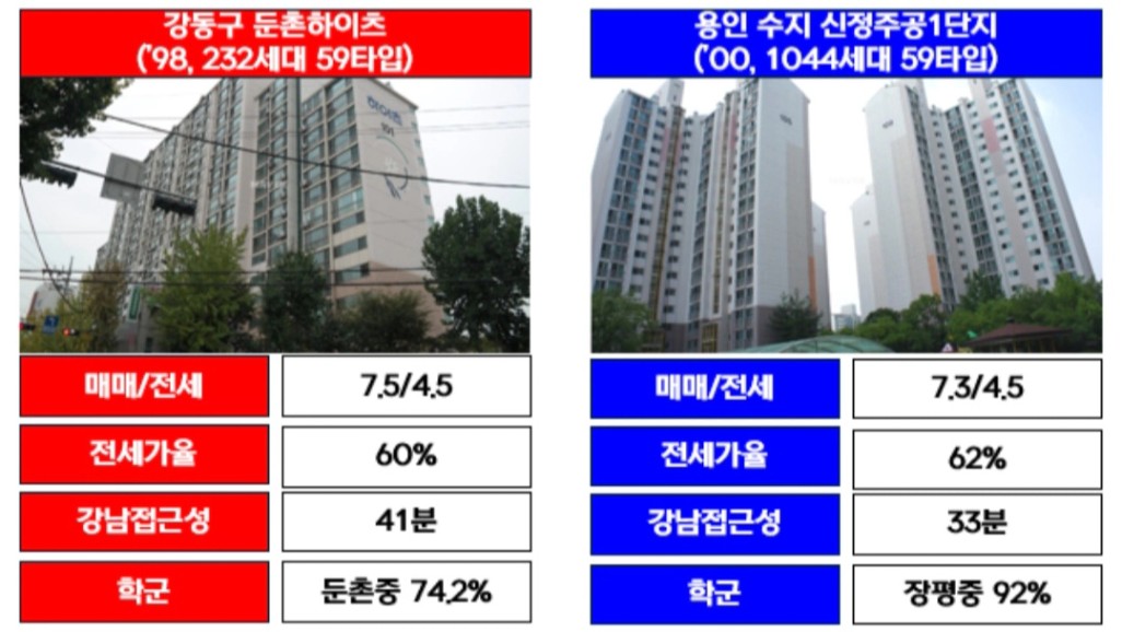 강동구 둔촌하이츠vs 용인 수지 신정주공1단지