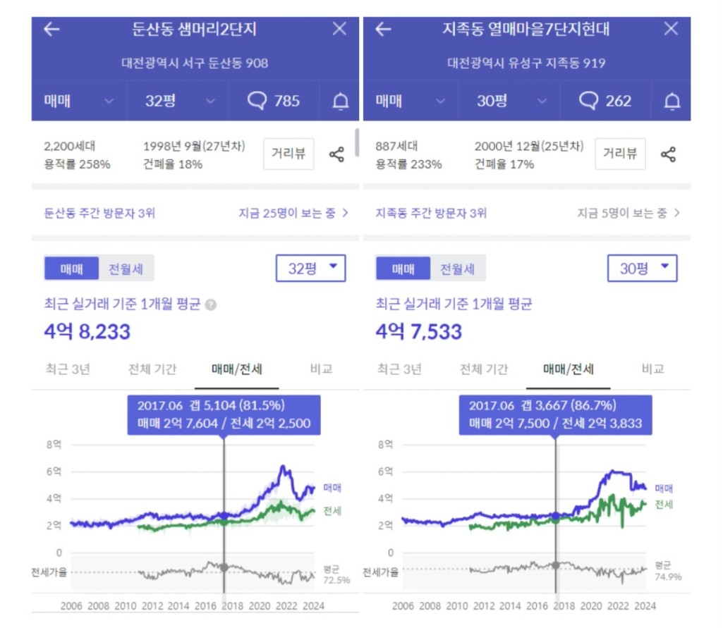 2017년 6월 당시에는,조금 더 선호되는 둔산동의