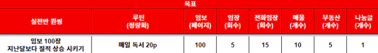 원씽 : 임보 100장, 지난달보다 질적으로 상승 | O | 장수로는 달성이지만.. 과연 질적으로 상승했는가는 물음표. 그러나 결론부는 지난 달보다는 조금 더 발전했다. |