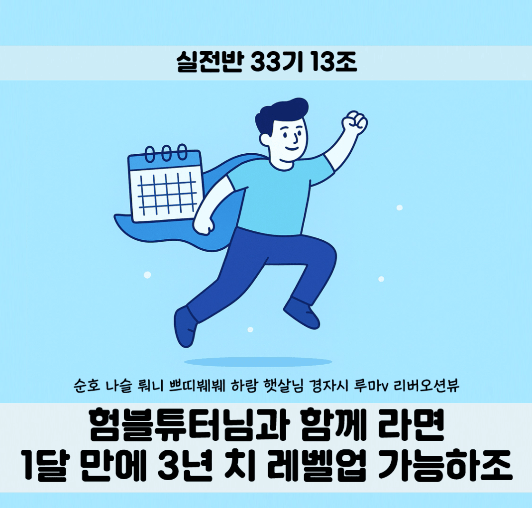 25.11. 33기 13조 실전반을 마무리하는 성장후기로 마무리 하고자 합니다