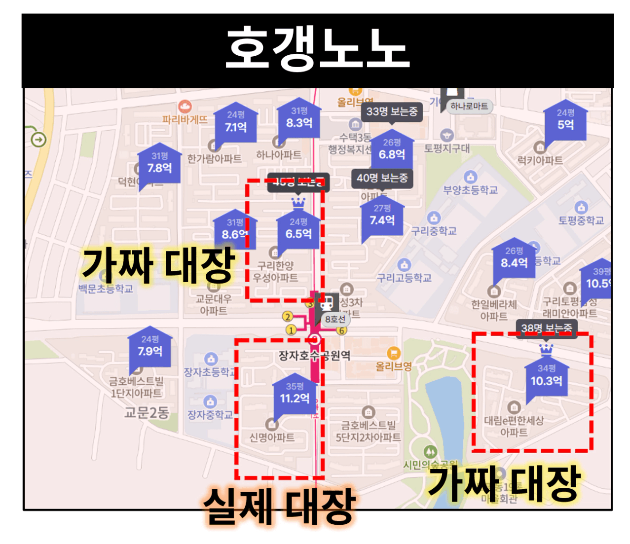 호갱노노에서 ‘왕관’이 씌워진 단지가 대장일 확률이 높지만