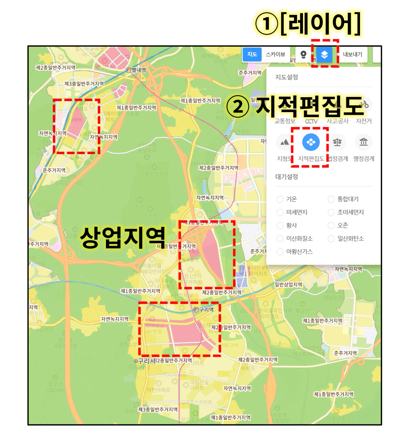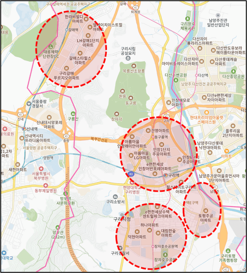 따라서 지도상으로 아파트가 밀집되어 있는 것을 기준으로