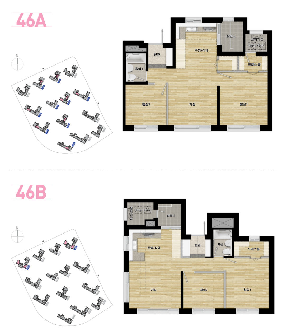 전용 46/55/84㎡ 구성이라는 점에서, 1~2인 가구부터 신혼부부, 3~4인 가족까지 폭넓은 수요를 겨냥한 설계입니다.